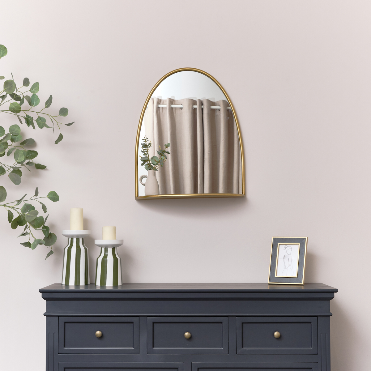 Arched Gold Mirror With Mirrored Shelf - 50cm x 60cm