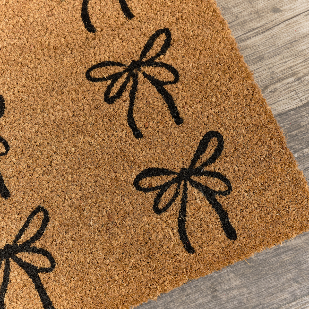 Black Bow Detail PVC Backed Coir Doormat 60cm x 40cm