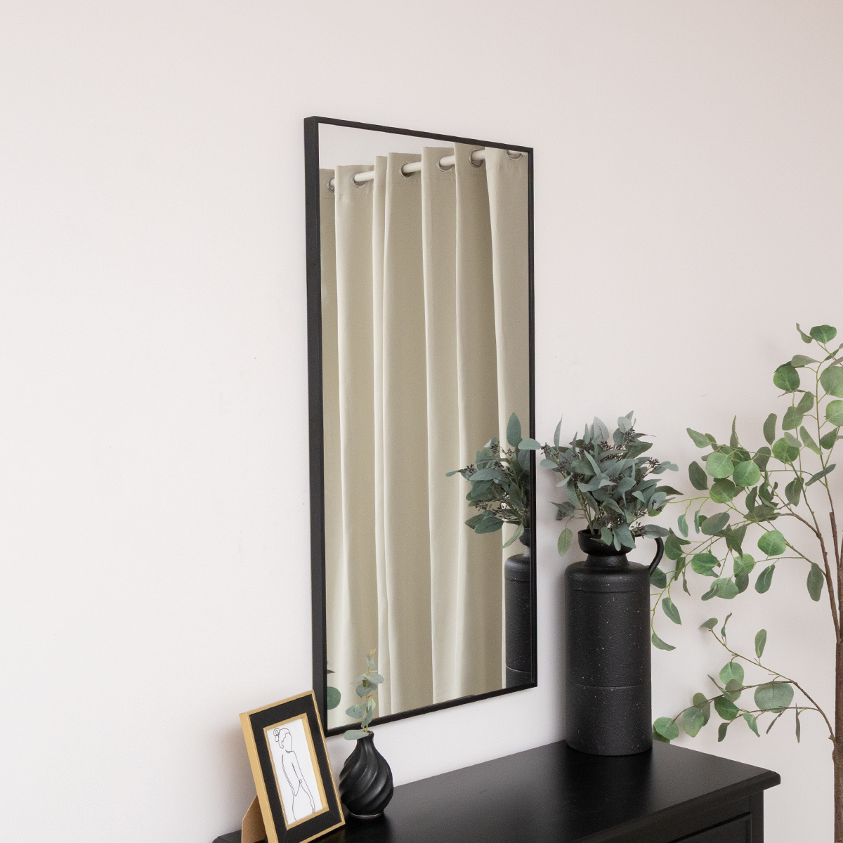 A stylish mirror choice for minimalist design and black home decor.