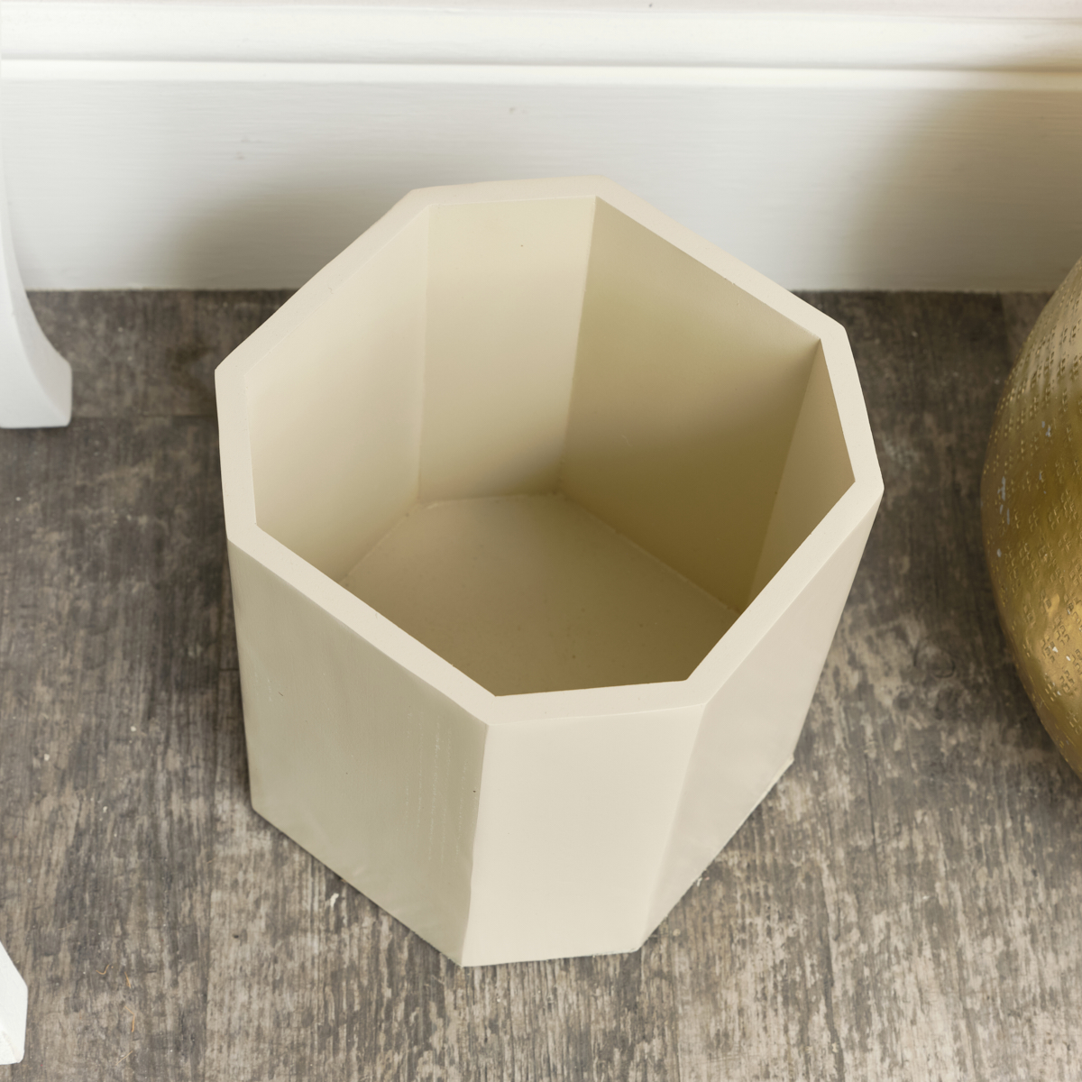 Cream Wooden Octagonal Edge Waste Paper Bin