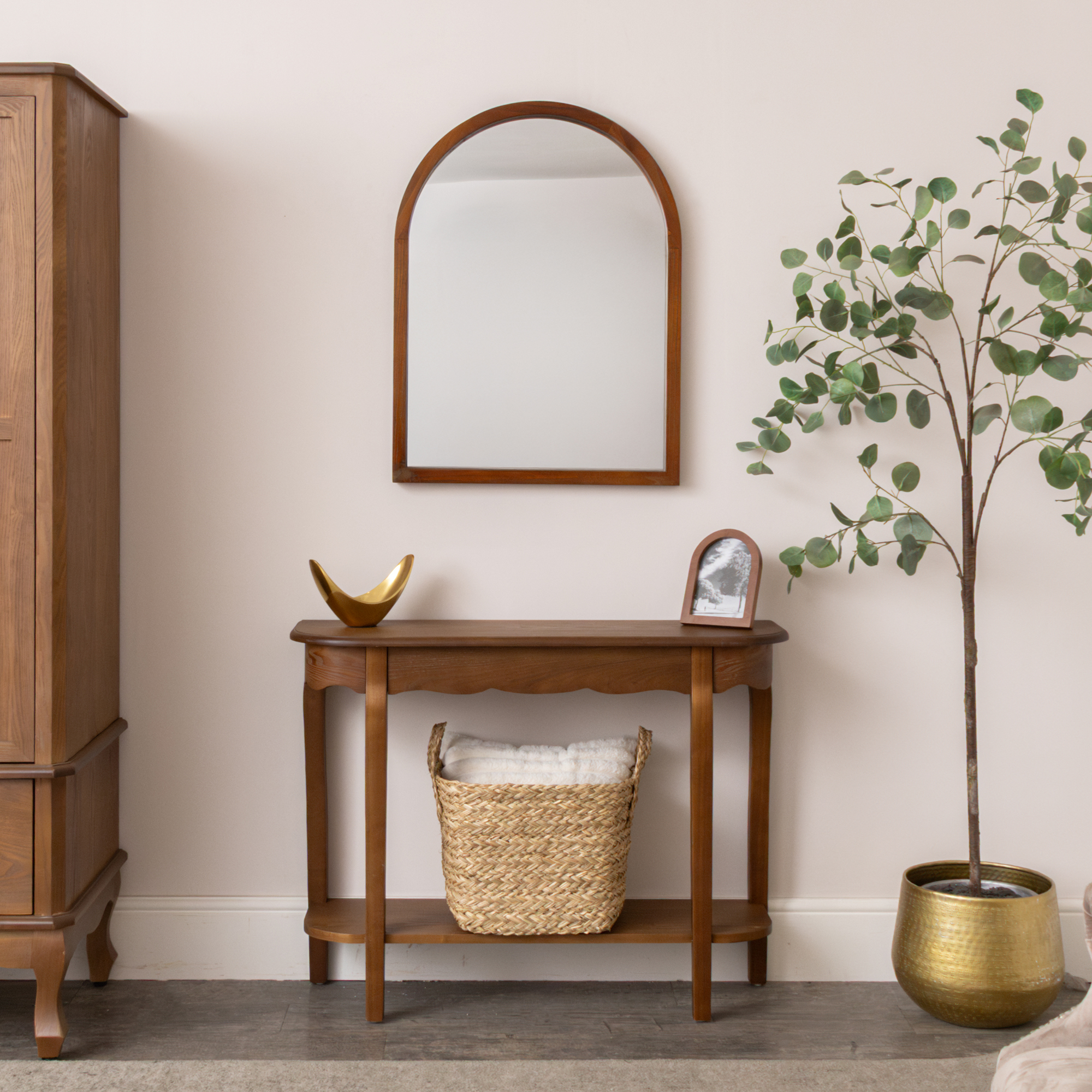 Dark Wood Framed Arched Wall Mirror - 60cm x 80cm