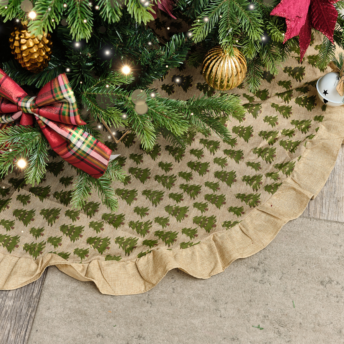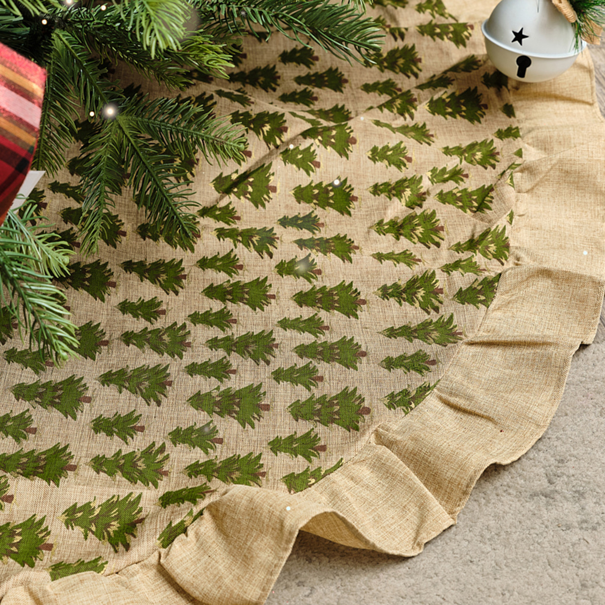 Hessian Tree Print Christmas Tree Skirt - 120cm