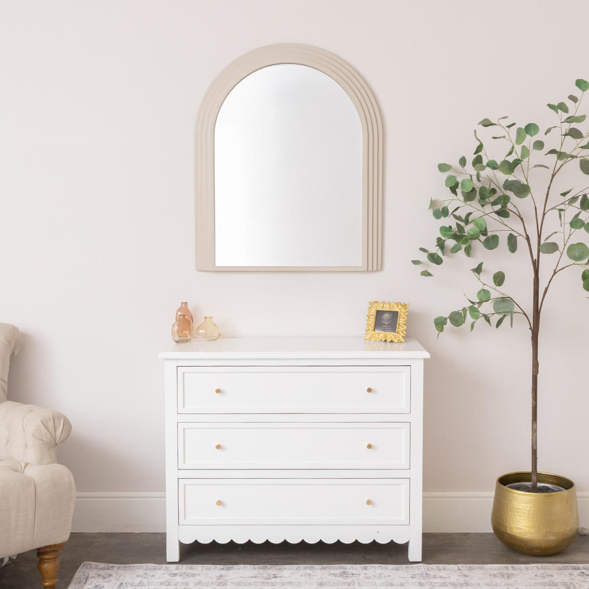 Large Beige Arched Wall Mirror - 90cm x 75cm