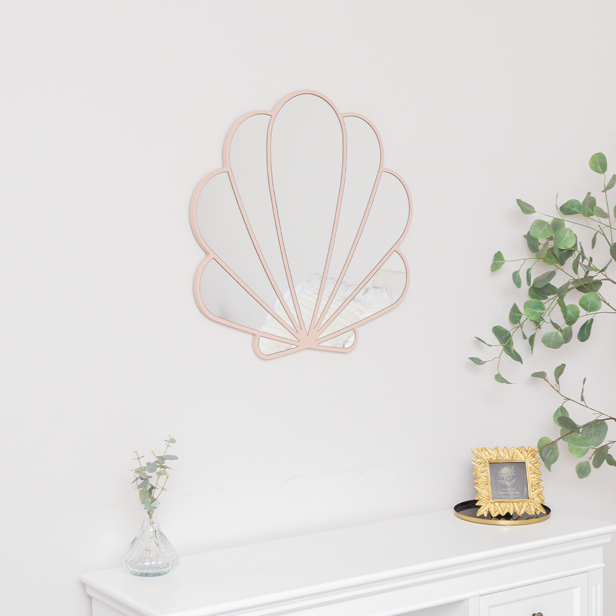 Large Pink Shell Shaped Wall Mounted Mirror - 60cm x 60cm