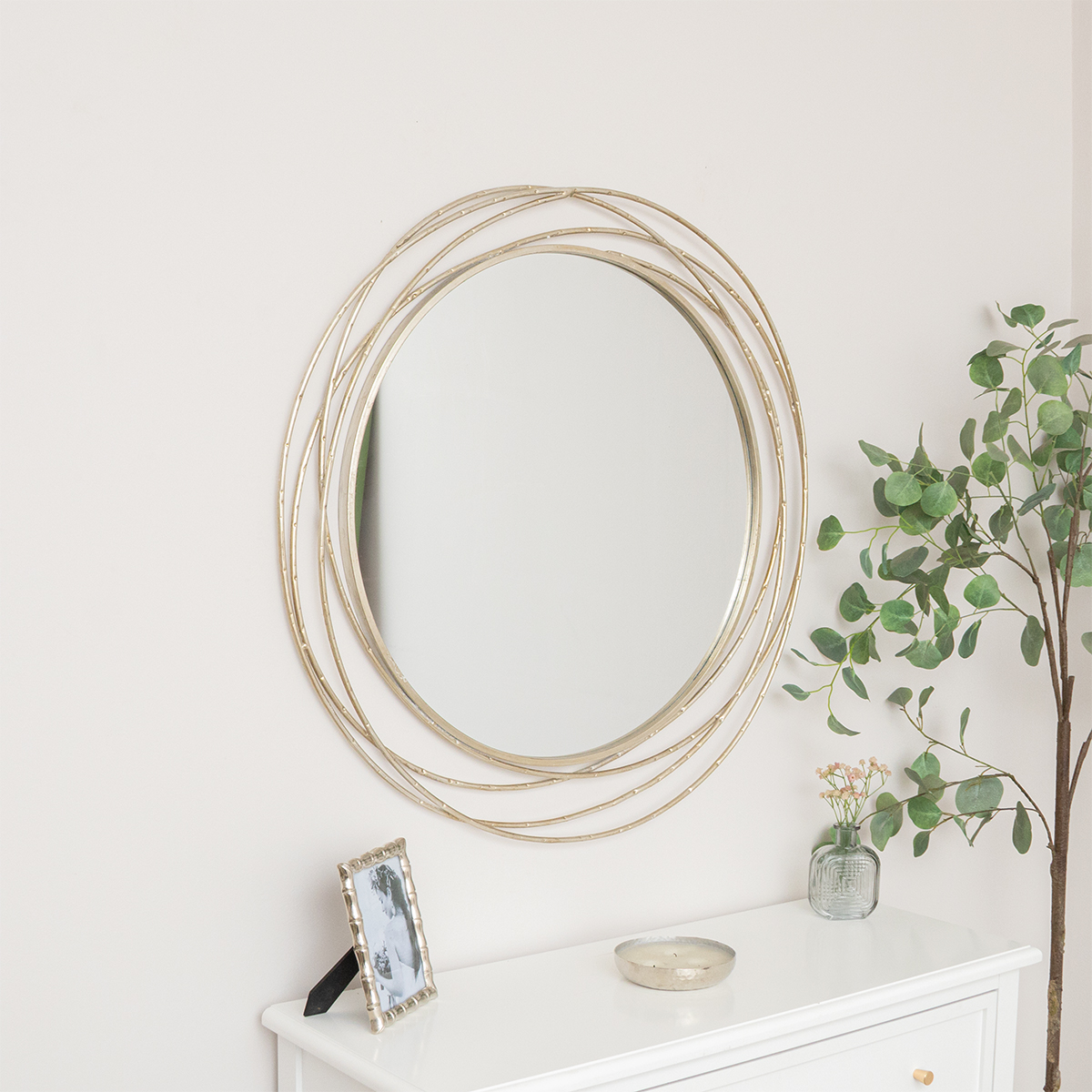 A fab statement mirror, this wall mirror comes in a large size with ornate swirled frame. The circular design makes this mirror stand out and fit in with most decors.
