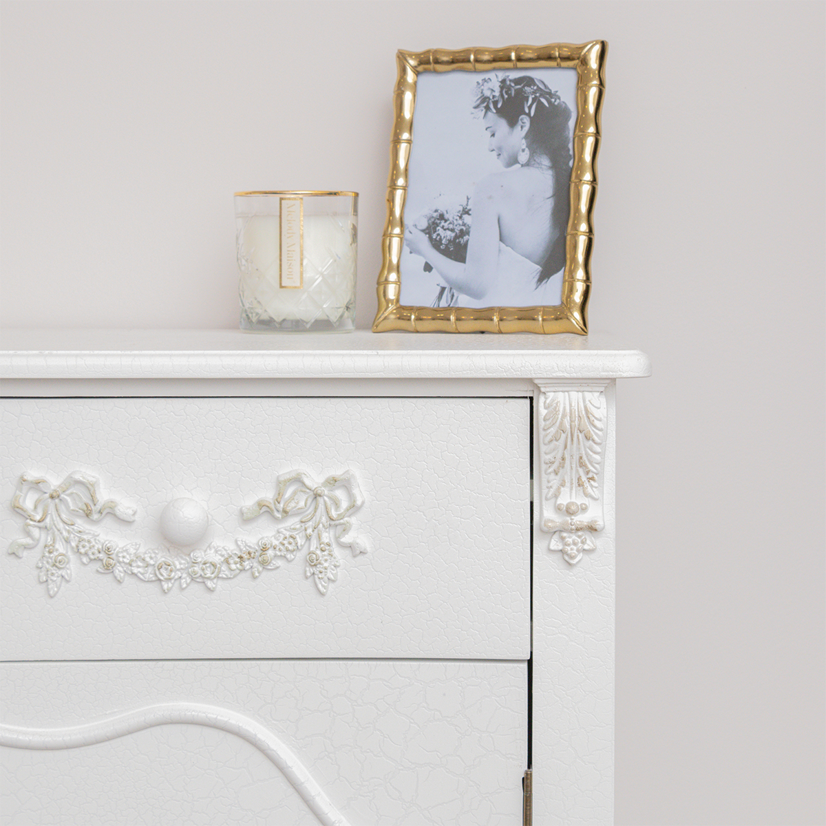 This Large White Sideboard Cupboard from the Pays Blanc Range is a stunning storage choice for fans of white, neutral furniture. With three pull out drawers and a large cupboard area with 2 doors, this sideboard offers an ideal amount of storage. This sideboard comes with a white and gold crackled effect with matching white handles.