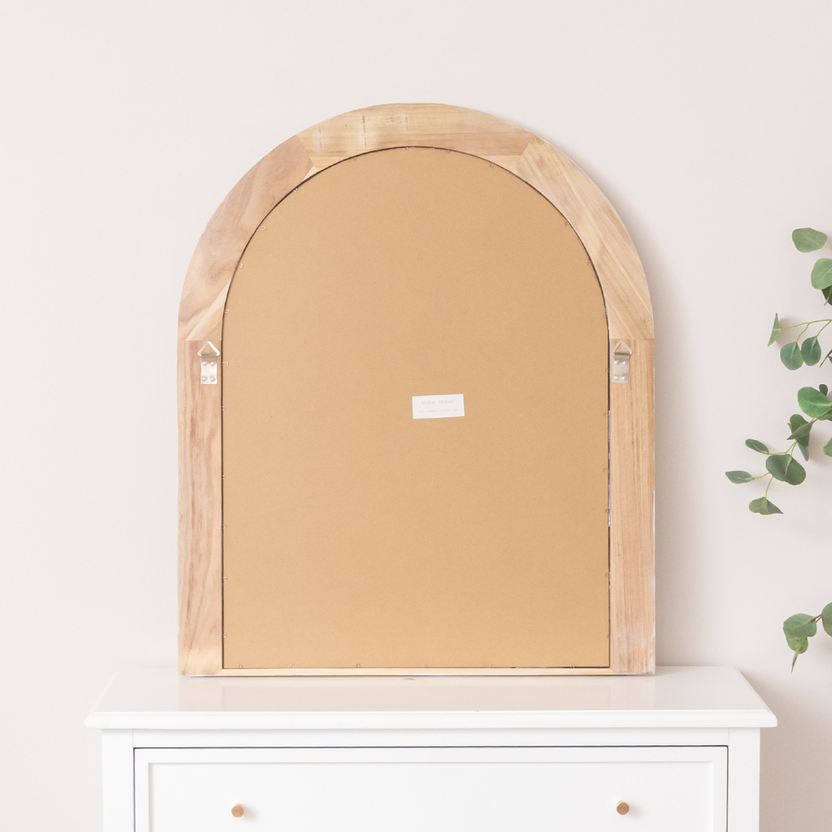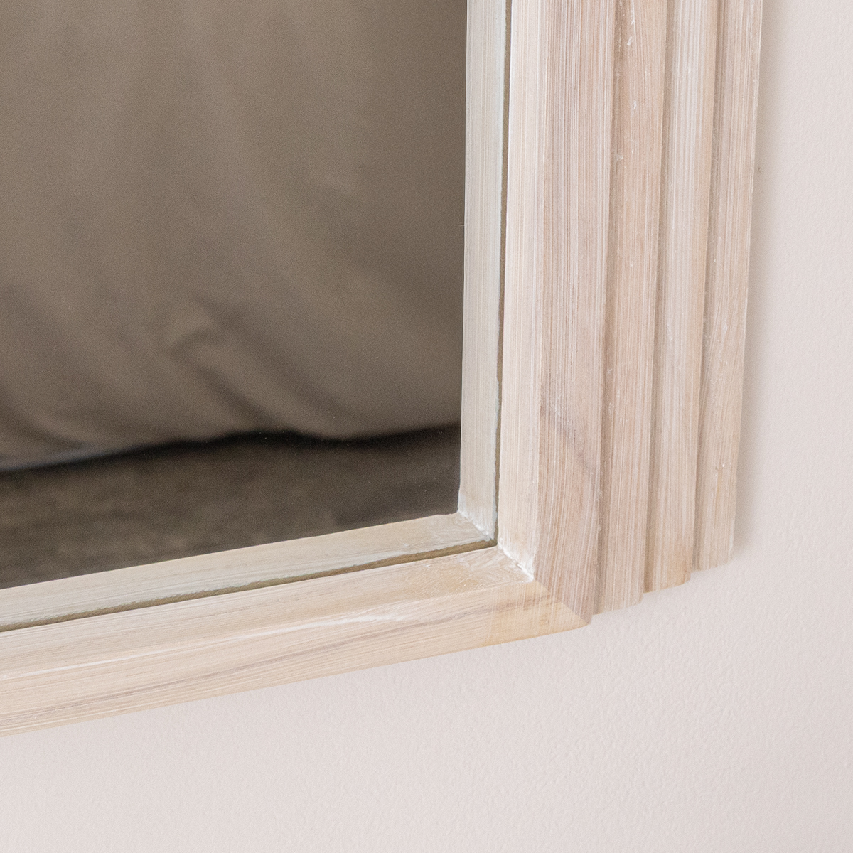 Large White Washed Wood Arched Wall Mirror - 90cm x 75cm