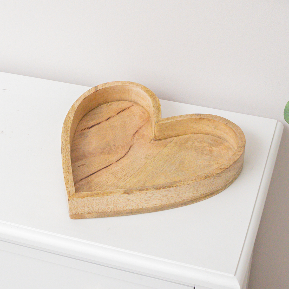 This Mango Wood Decorative Heart Display Tray 25cm is a beautiful decor choice, ideal for fans of wooden home accessories and heart inspired design. Crafted from wood, this tray has a classic love heart shape and comes with a natural wooden design.