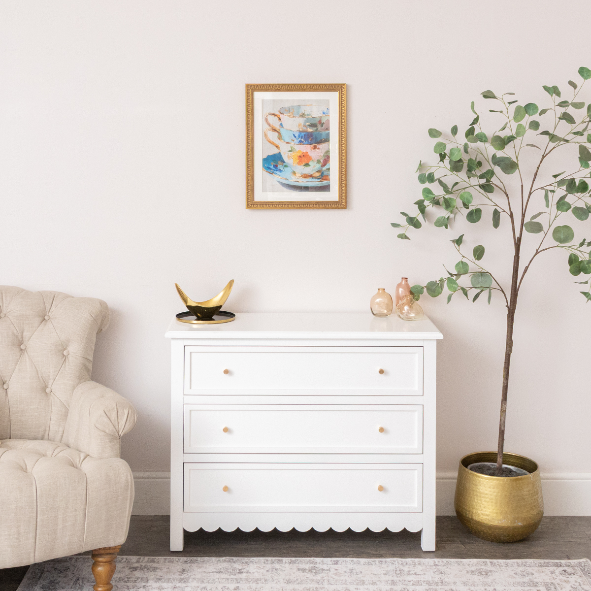 Multicoloured Teacup Wall Art with A Vintage Gold Frame - 40cm x 50cm