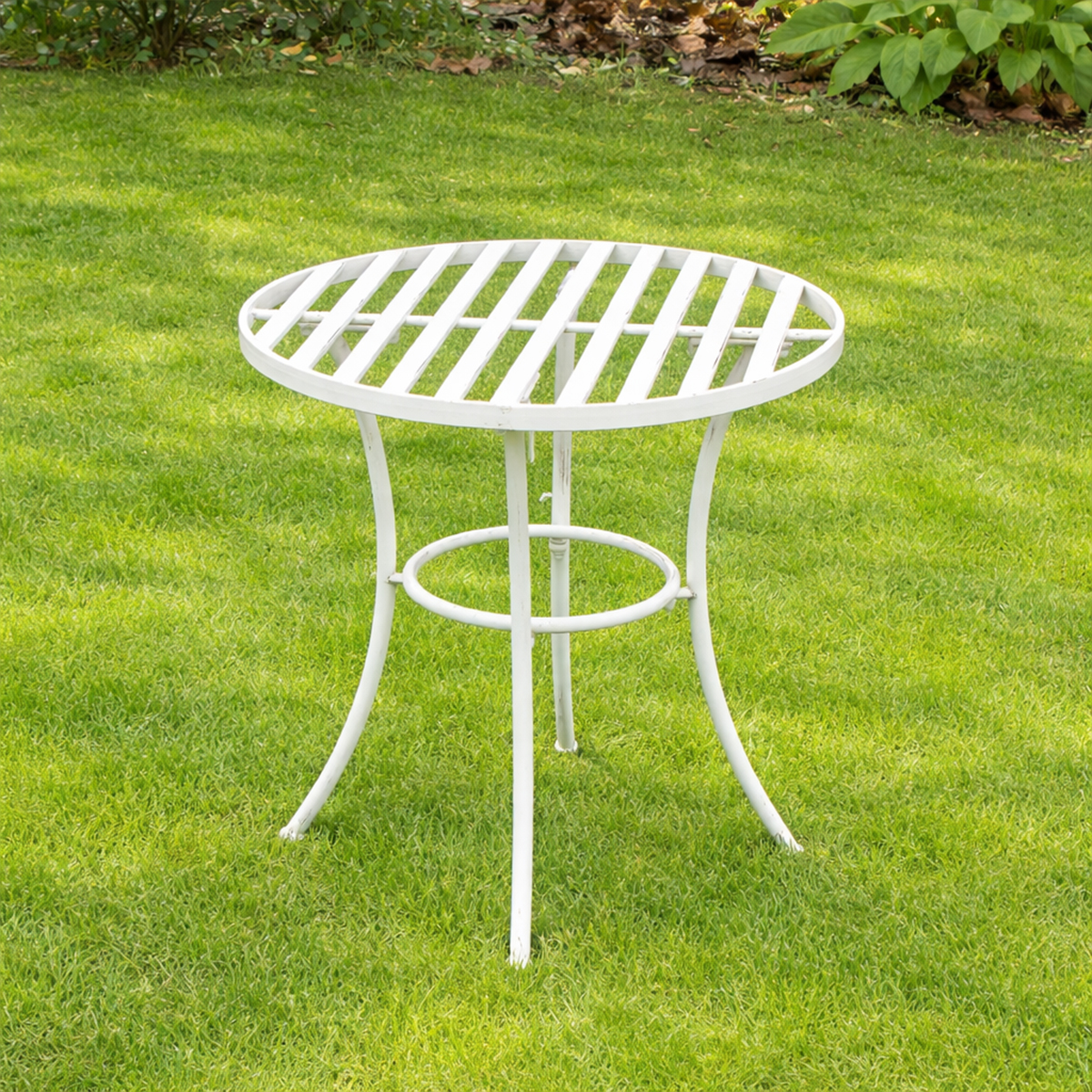 Ornate Metal White Round Garden Table & Set of 2 Ornate Garden Chairs