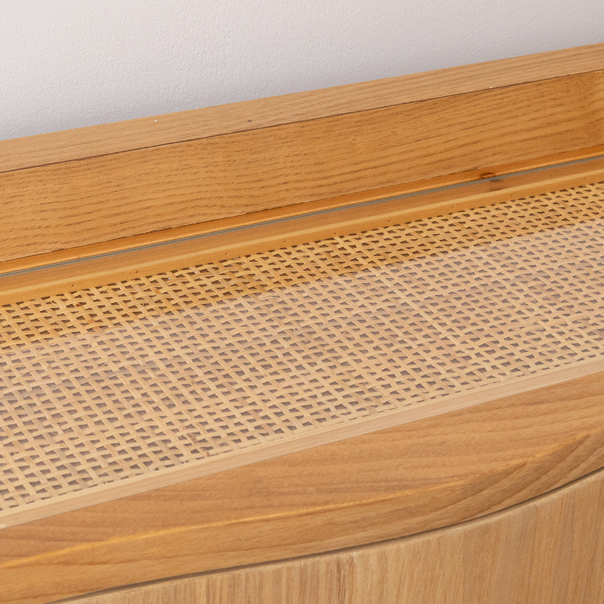 Pale Wood Curved 3 Drawer Console Table with Hessian & Glass Top - Austin Wood Range