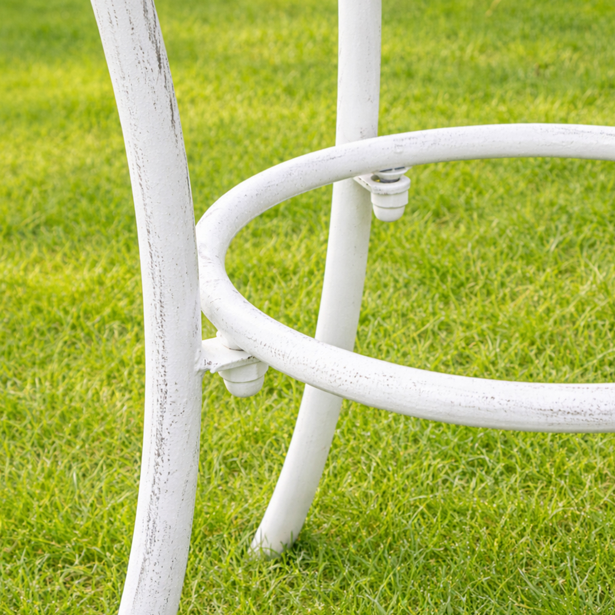 Round Distressed White Garden Side Table - 50cm x 50.5cm