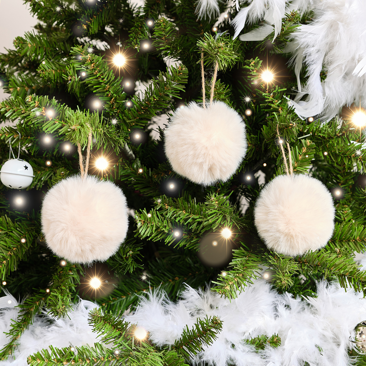 Set of 3 Small Cream Faux Fur Baubles - 7.5cm