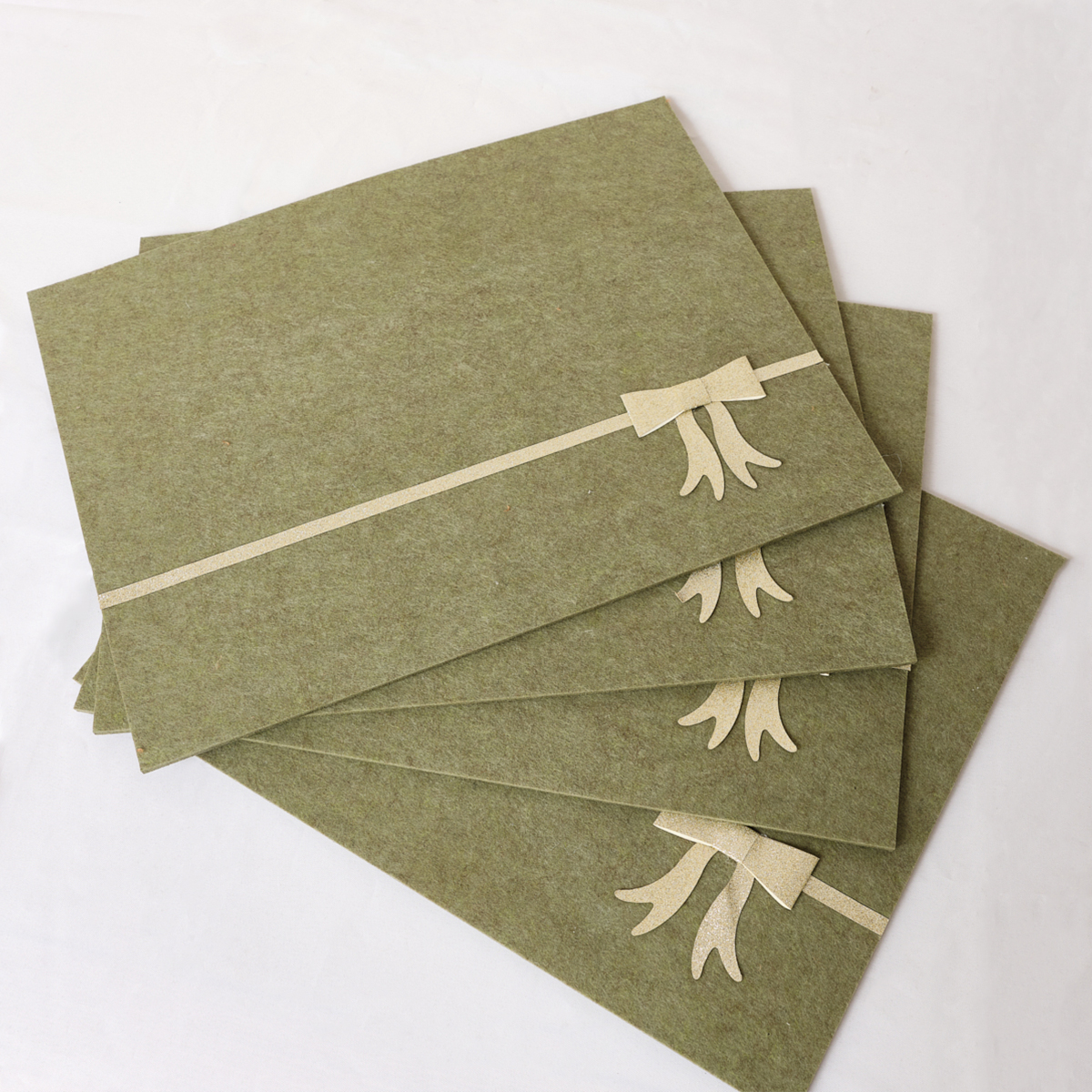 Set of 4 Green Rectangular Felt Placemat with Champagne Gold Bow