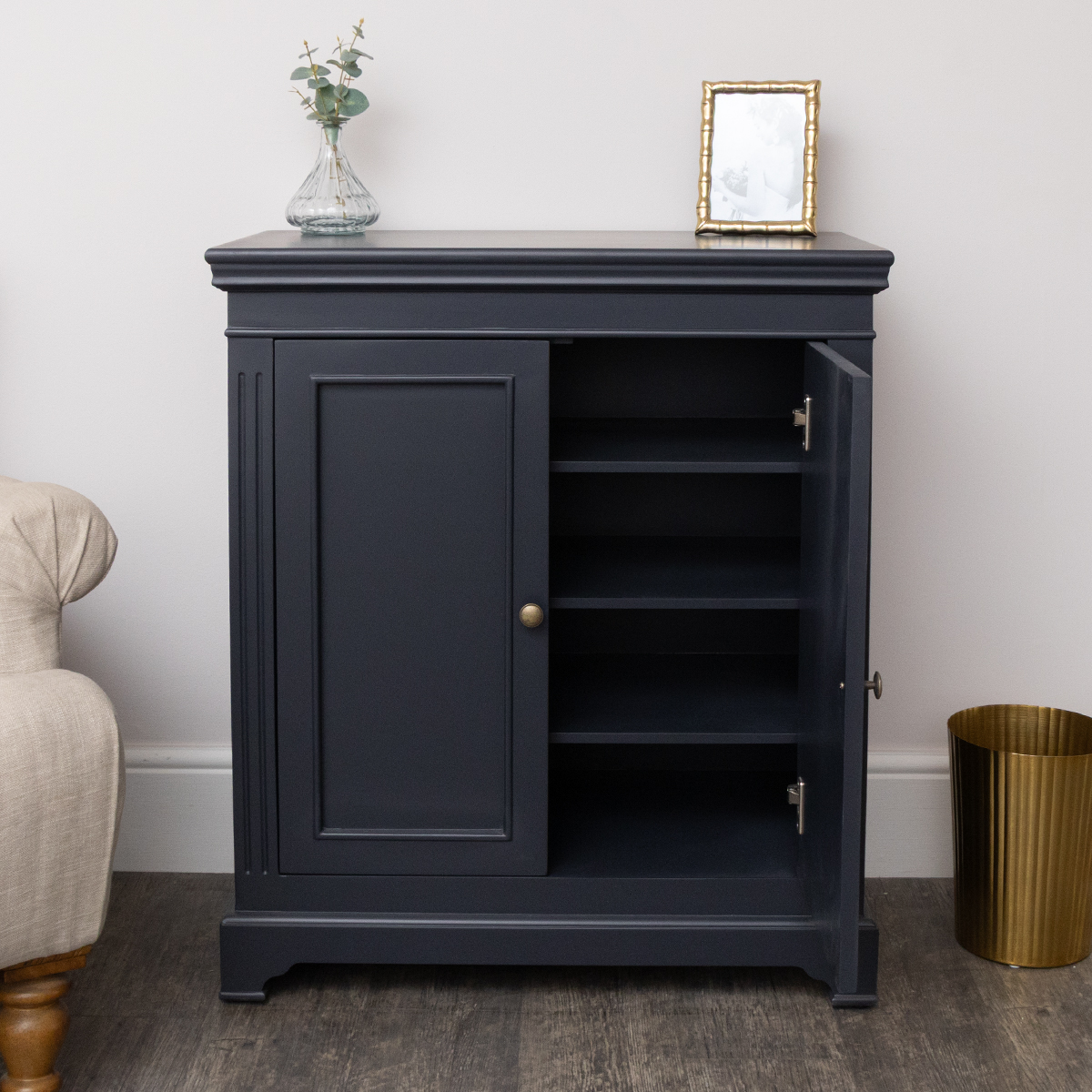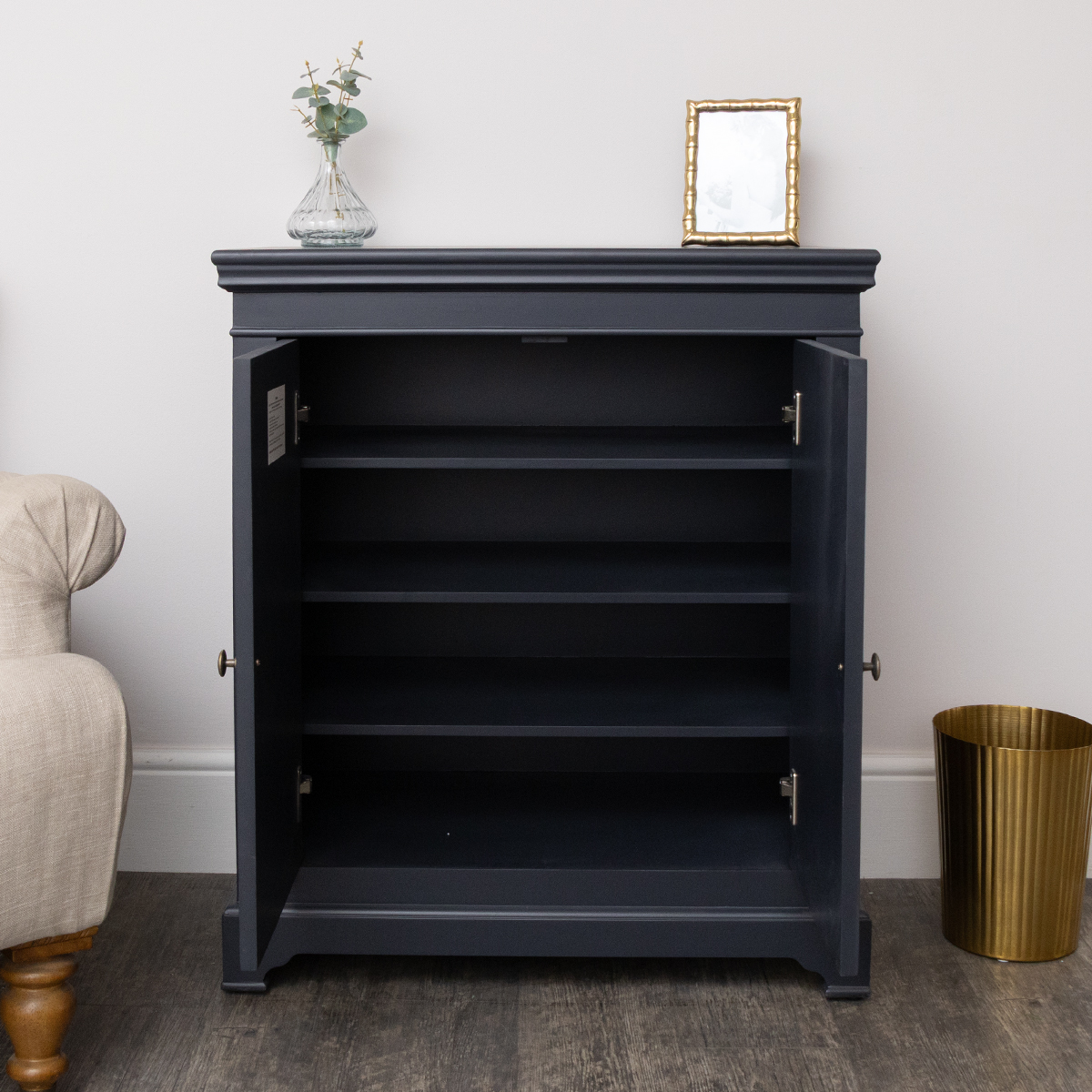 Slimline Two Door Shoe Cabinet With 3 Shelves - Daventry Navy Black Range