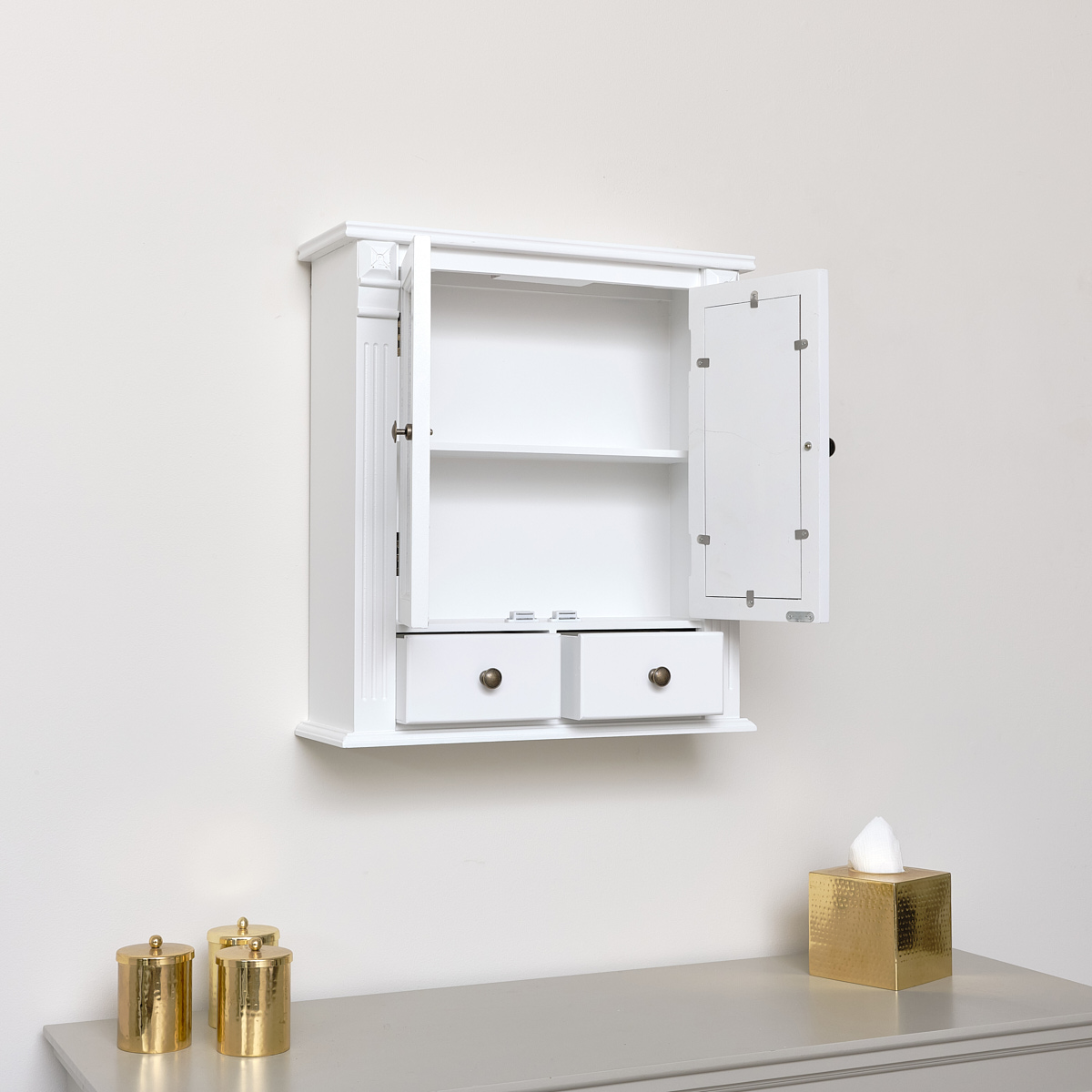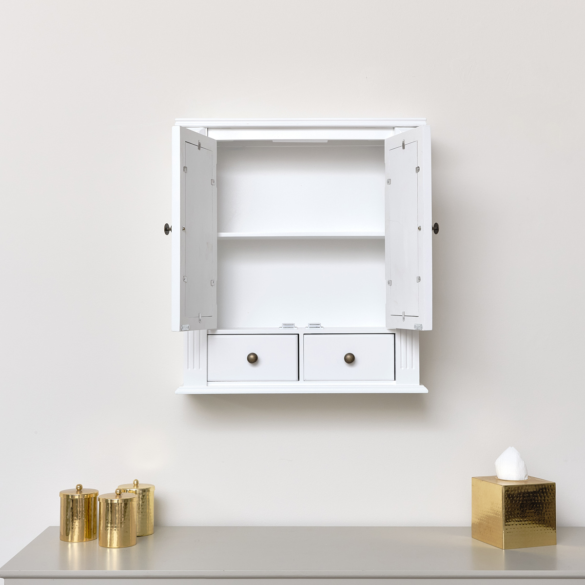 This white wall mounted bathroom cabinet is the perfect stylish addition to your home. With drawer storage and mirrored doors, it really makes for a gorgeous storage solution.