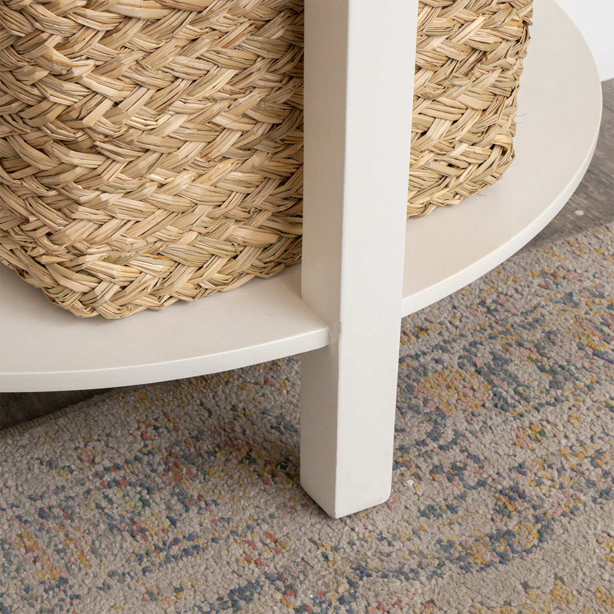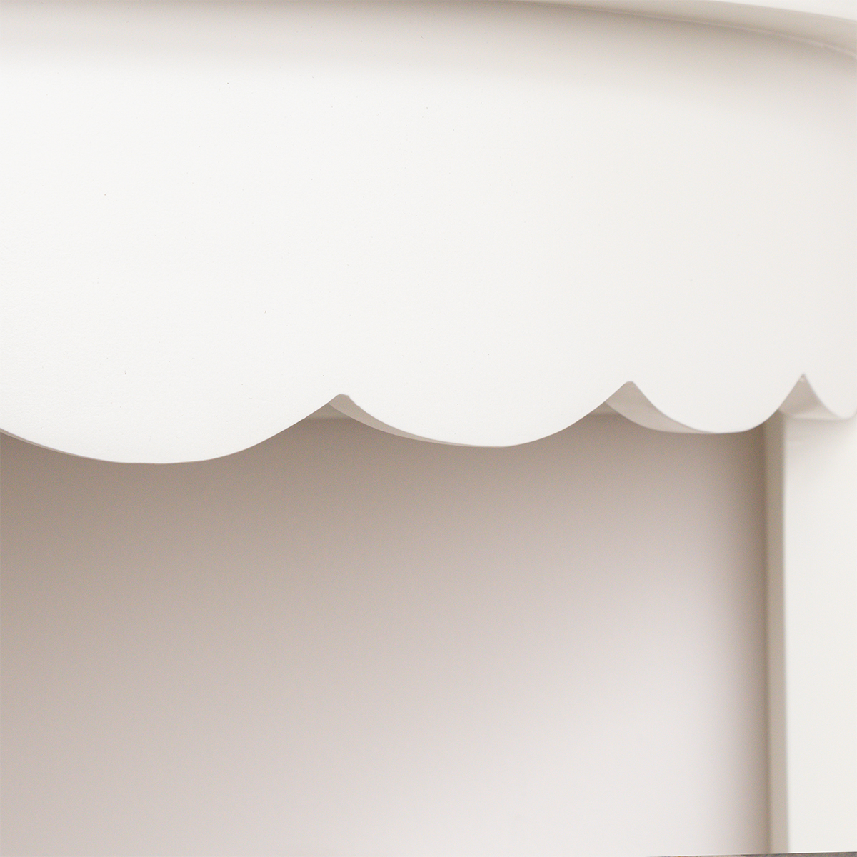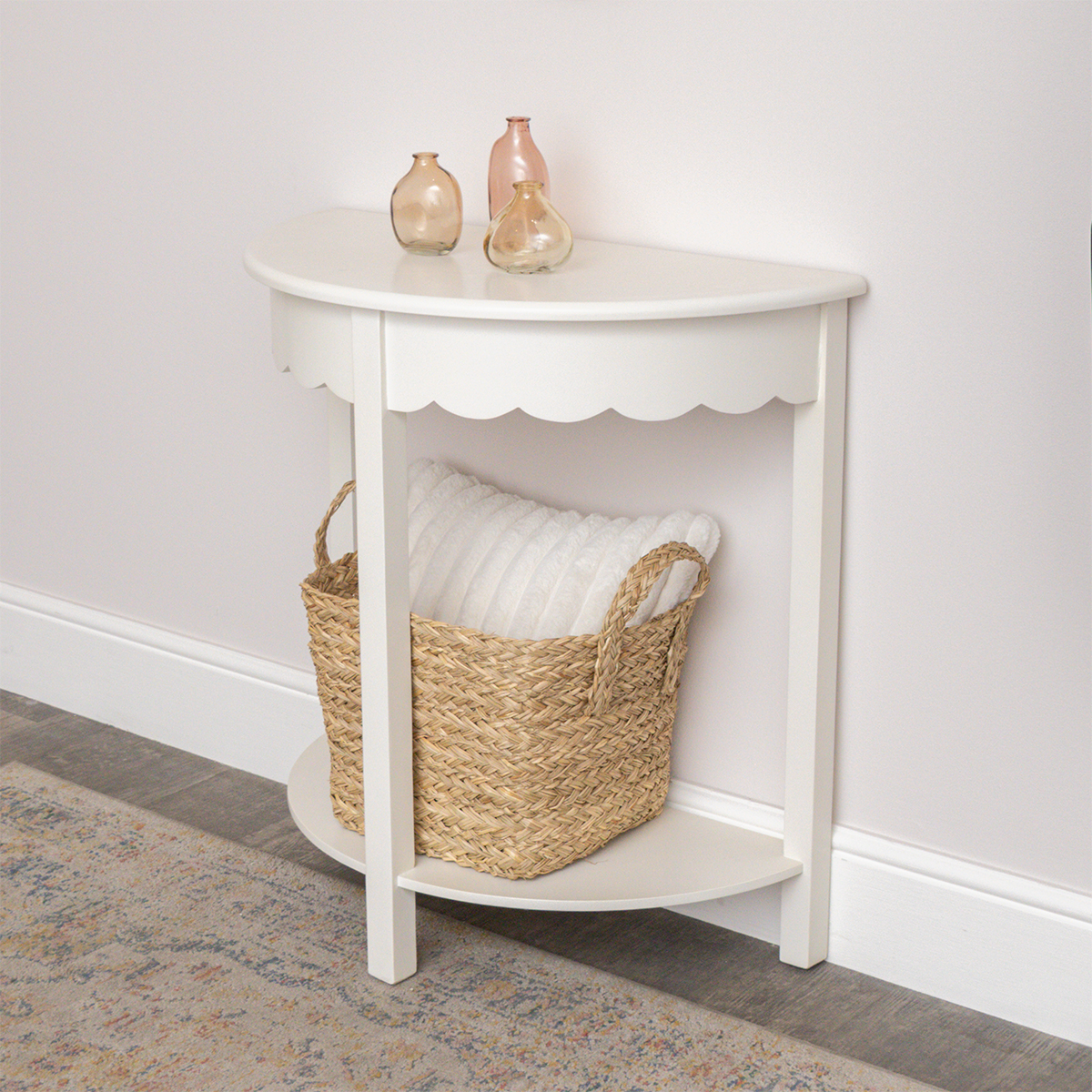 White Scalloped Half Moon Console Table with Shelf - 78cm x 80cm