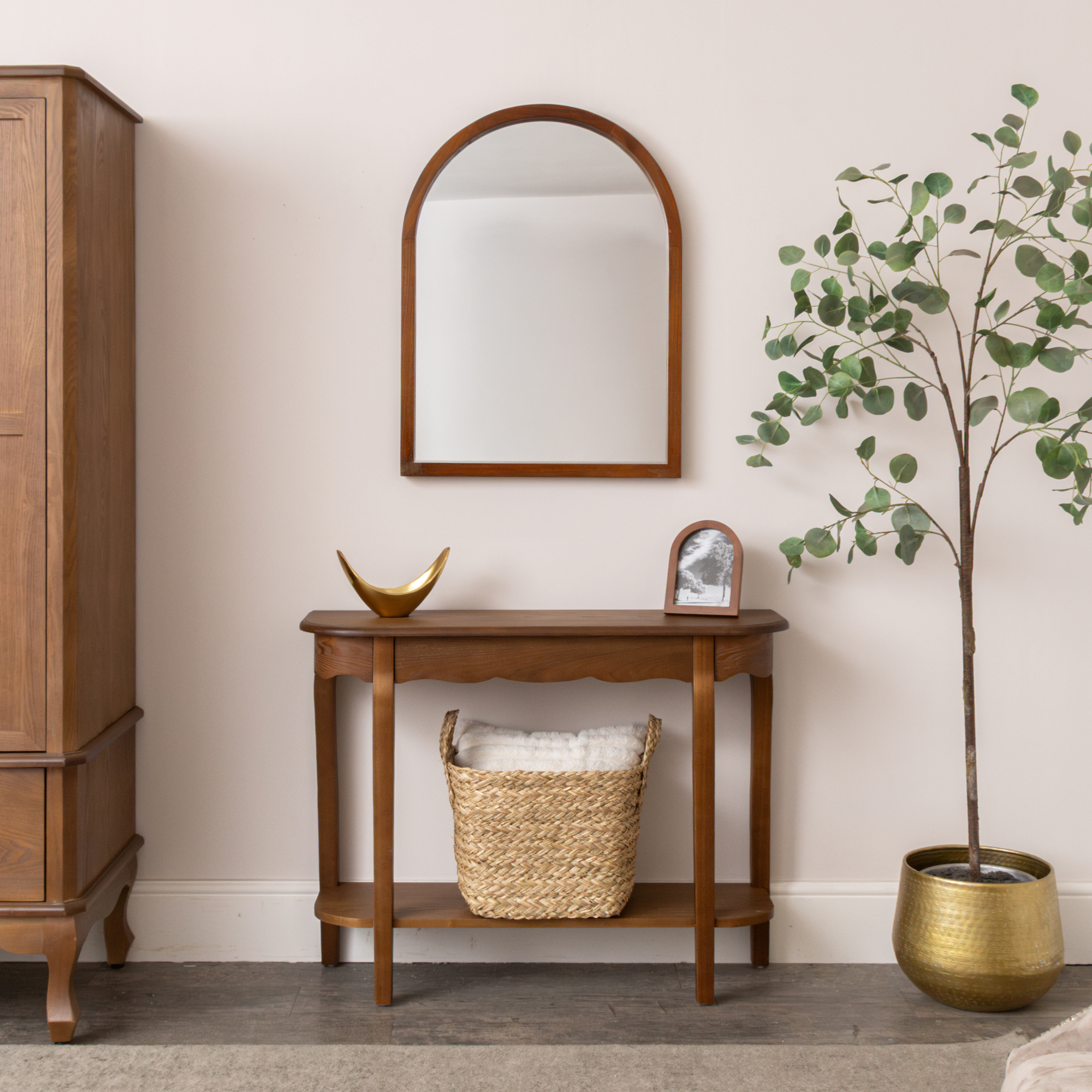 Wooden Half Moon Console Table with Shelf - Ashwell Range